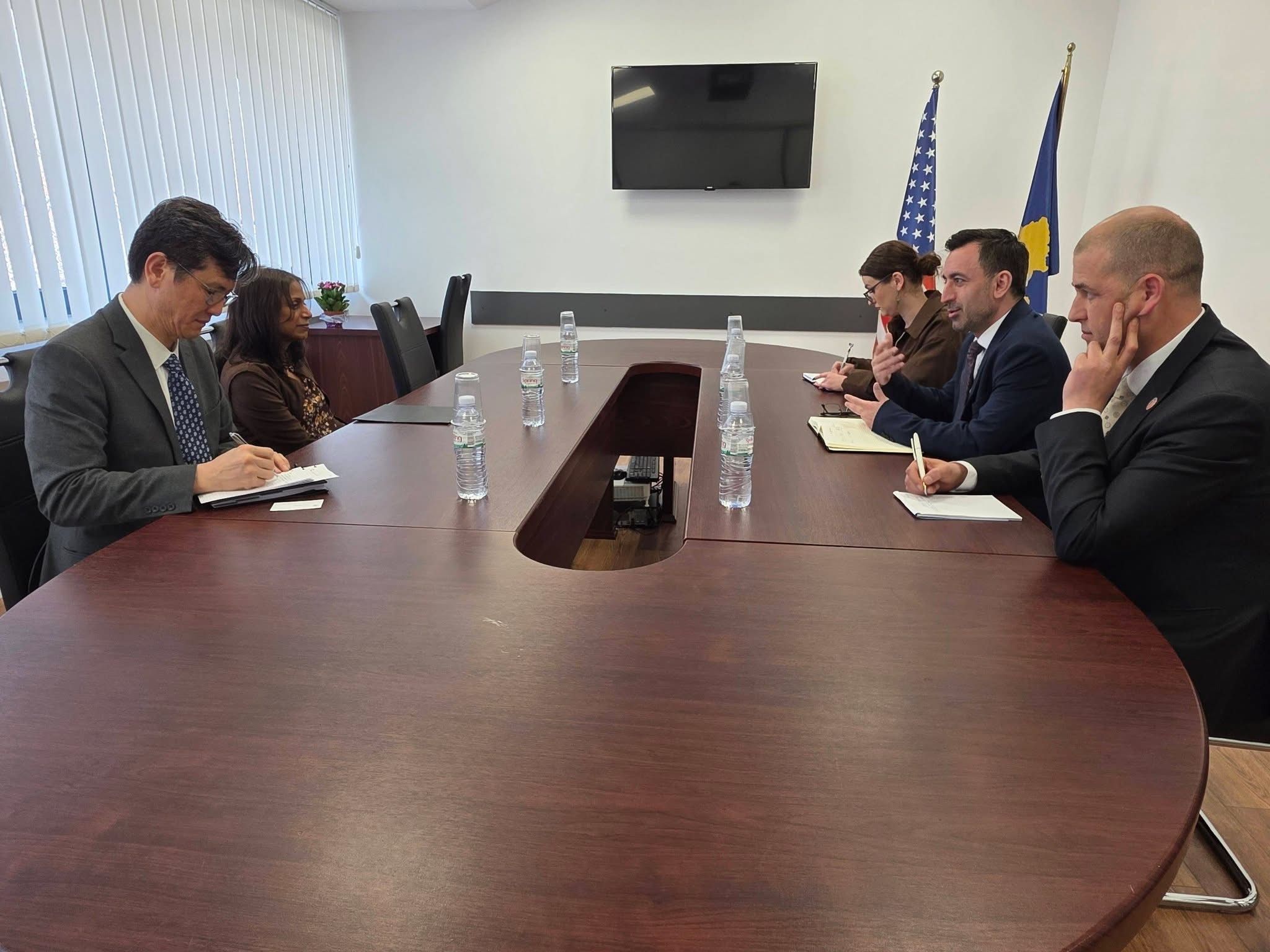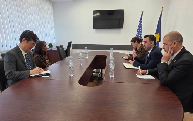 Sot, Ministri i Infrastruktures dhe Transportit, z. Dimal Basha, mirepriti ne takim te Ngarkuaren me Pune te Shteteve te Bashkuara te Amerikes ne Kosove, znj. Anu Prattipati, si dhe z. Craig Kim, zyrtar ekonomik prane Ambasades.