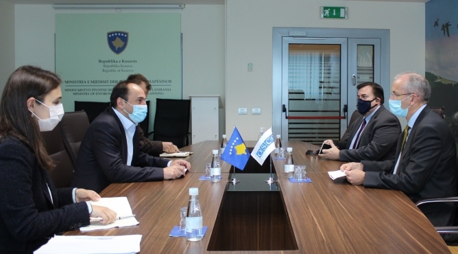 Ministri Liburn Aliu priti në takim shefin e misionit të OSBE-së në Kosovë, ambasadorin Michael Davenport